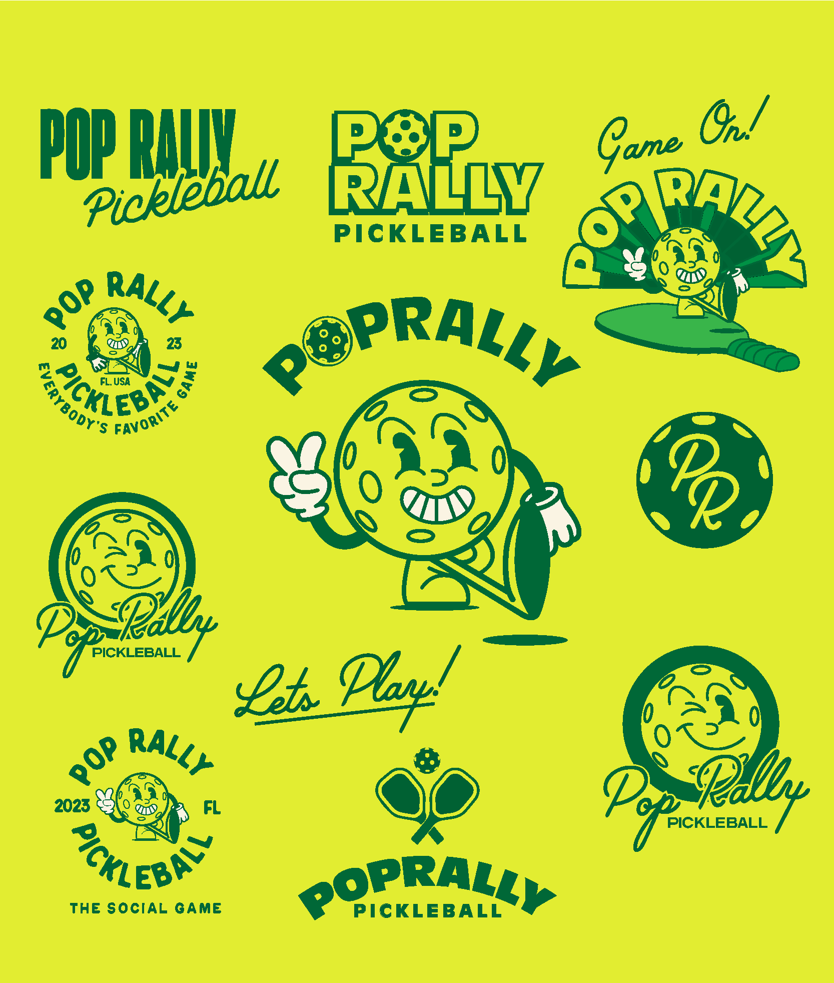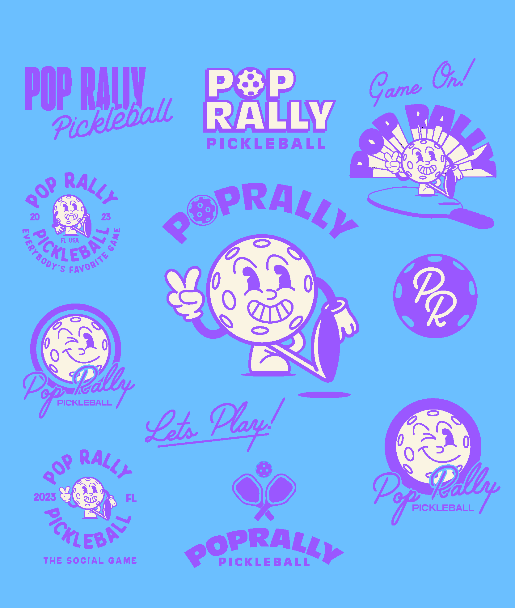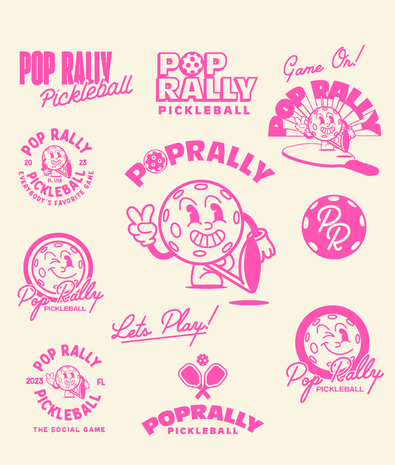 Pop Rally Pickleball is a pickleball pop-up vendor based in Tampa Bay, Florida. Pop Rally strives to create memorable experiences through the fun and friendly game of pickleball. Pop Rally reached out to me to develop their complete logo + brand identity. We aimed to create a brand that's quirky, fun, and reminiscent of the bold design choices of Miami, Florida. As an avid pickle-baller myself I couldn't have been more thrilled to work with such an exciting brand I hope to pickleball with one day.